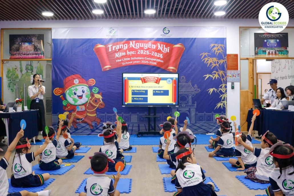 “Trạng Nguyên Nhí” là sân chơi trí tuệ do Hệ thống Mầm non Quốc tế Global Ecokids tổ chức, dành cho các bé từ 3 đến 6 tuổi thuộc khối Orange, Apple và Pineapple. Cuộc thi vừa mang dấu ấn văn hóa Việt Nam với mô phỏng hình thức thi truyền thống khoa bảng xưa, vừa mở rộng cơ hội cho trẻ tiếp cận kiến thức đa dạng, trong đó có cả những câu hỏi bằng tiếng Anh nhằm nuôi dưỡng tinh thần hội nhập.