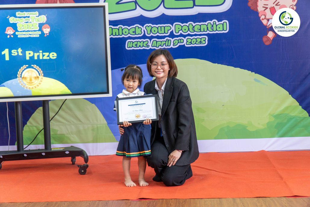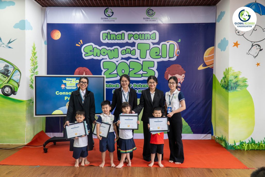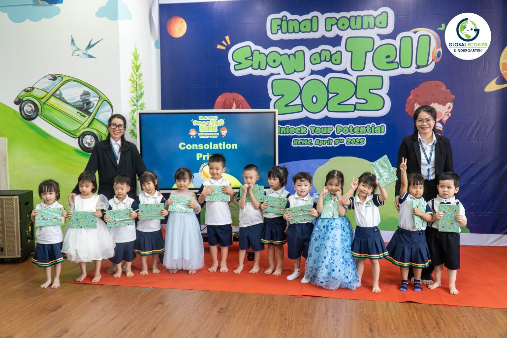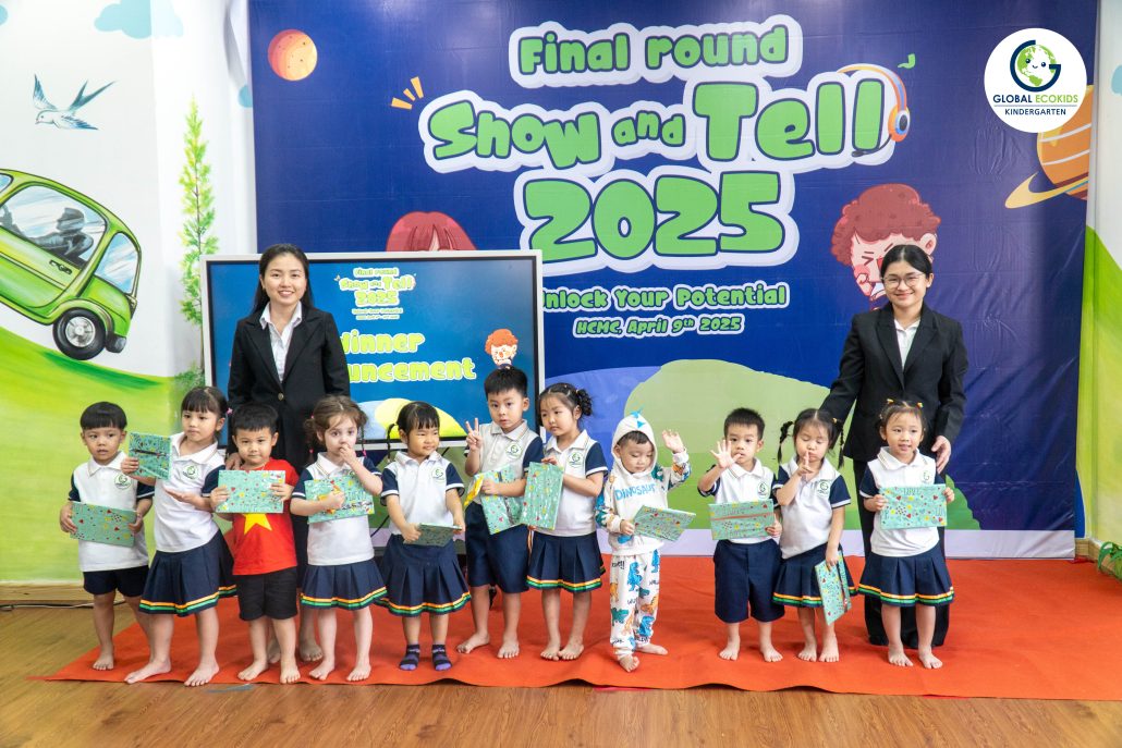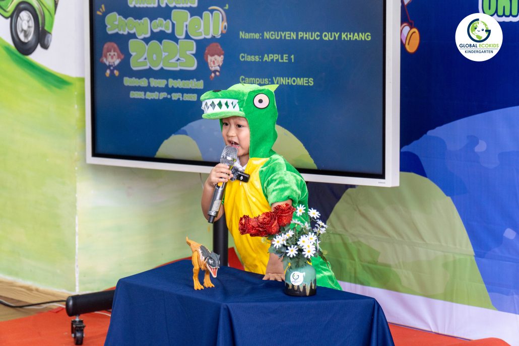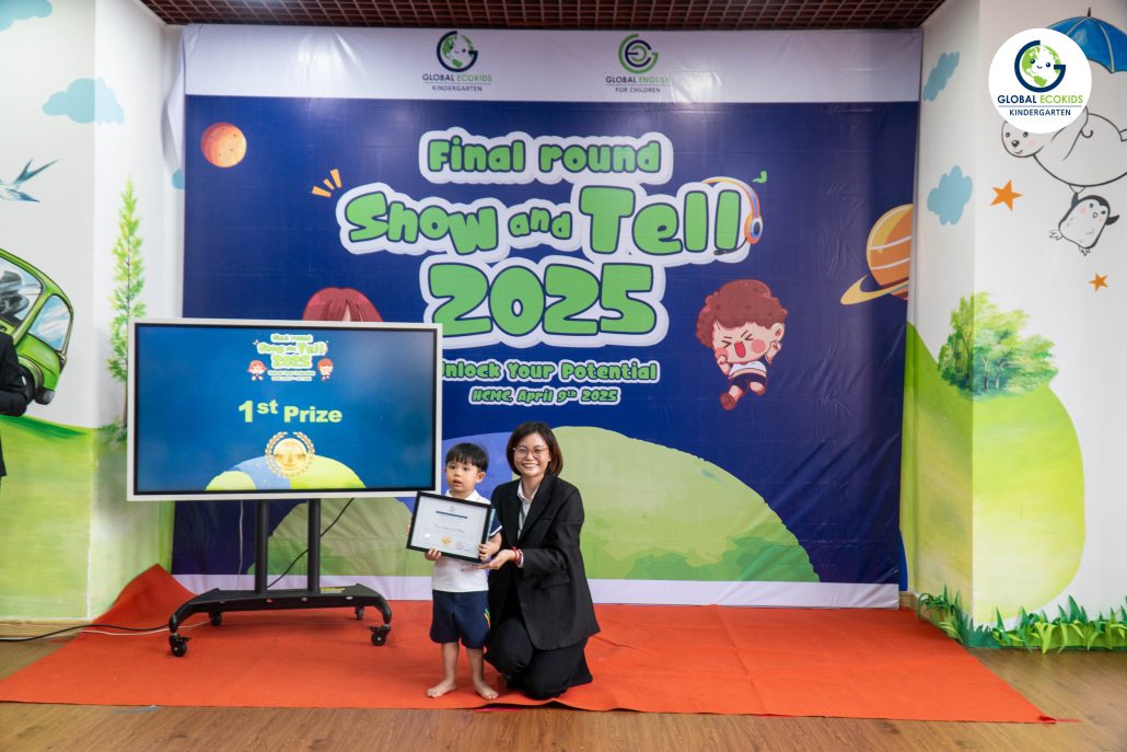 “Show and Tell” là hoạt động thường niên được Global Ecokids tổ chức, nhằm tạo cơ hội cho các bé thể hiện khả năng tiếng Anh, thuyết trình và chia sẻ những câu chuyện yêu thích. Không chỉ là một cuộc thi, đây còn là nơi khơi nguồn cảm hứng, nuôi dưỡng sự sáng tạo và sự tự tin của trẻ ngay từ những năm đầu đời.