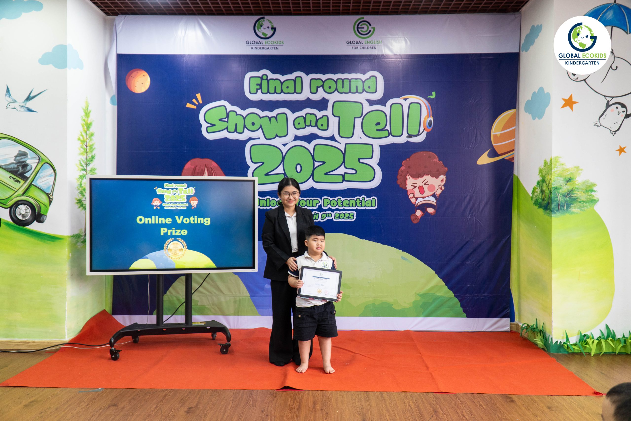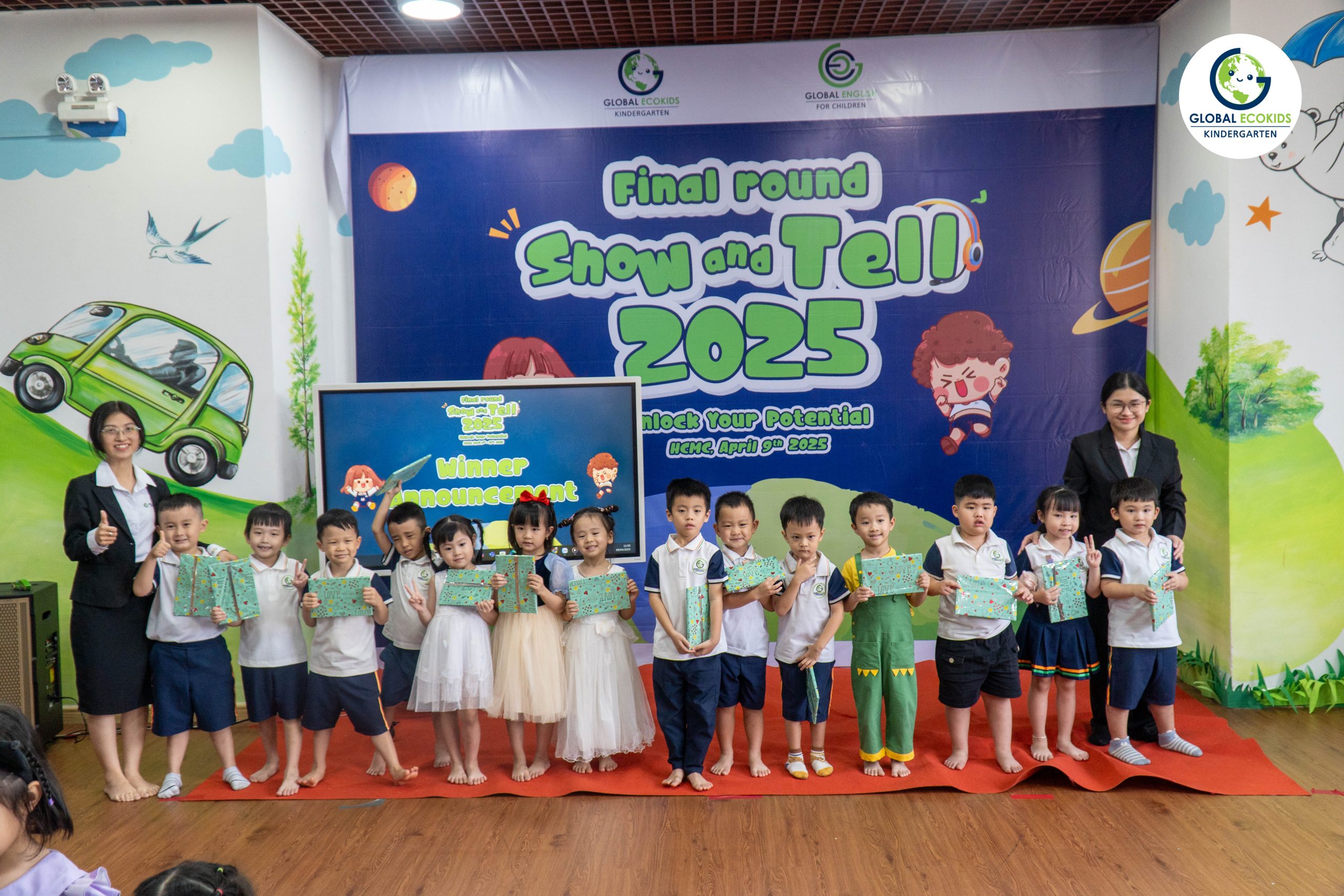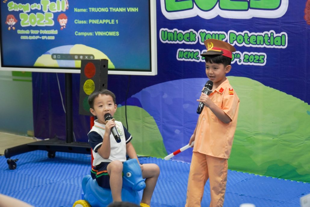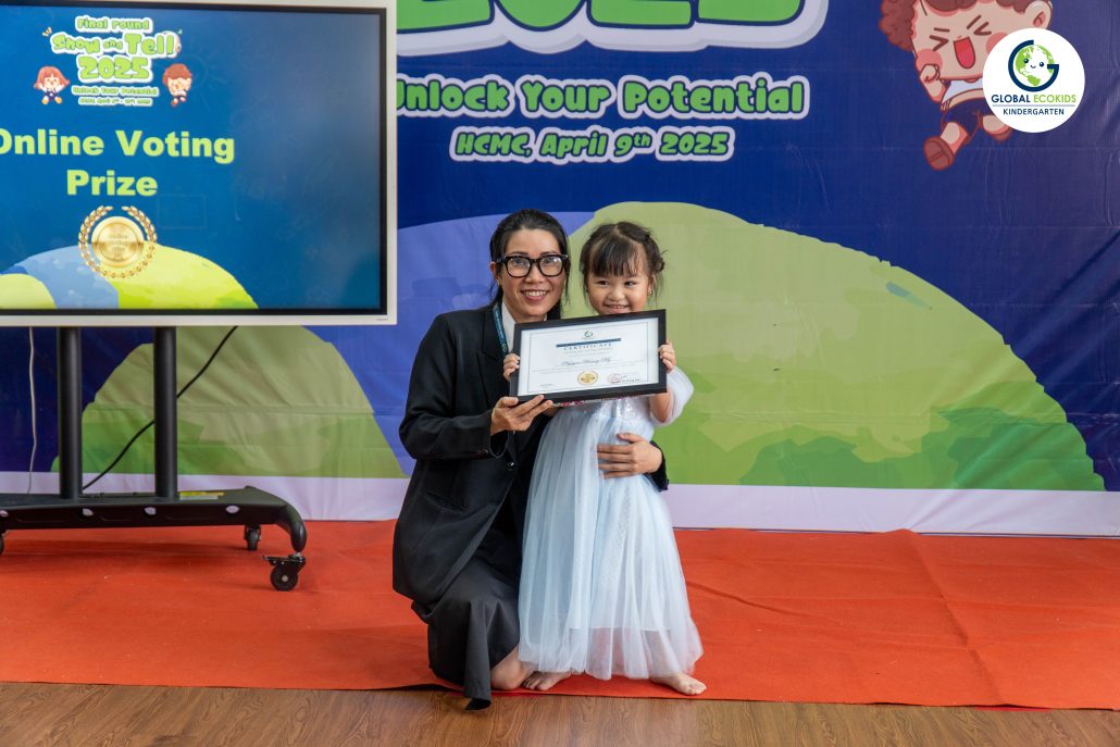 “Show and Tell” là hoạt động thường niên được Global Ecokids tổ chức, nhằm tạo cơ hội cho các bé thể hiện khả năng tiếng Anh, thuyết trình và chia sẻ những câu chuyện yêu thích. Không chỉ là một cuộc thi, đây còn là nơi khơi nguồn cảm hứng, nuôi dưỡng sự sáng tạo và sự tự tin của trẻ ngay từ những năm đầu đời.