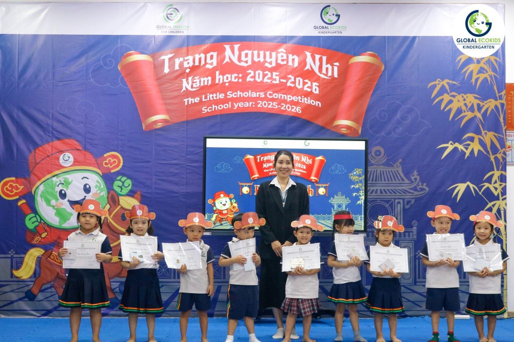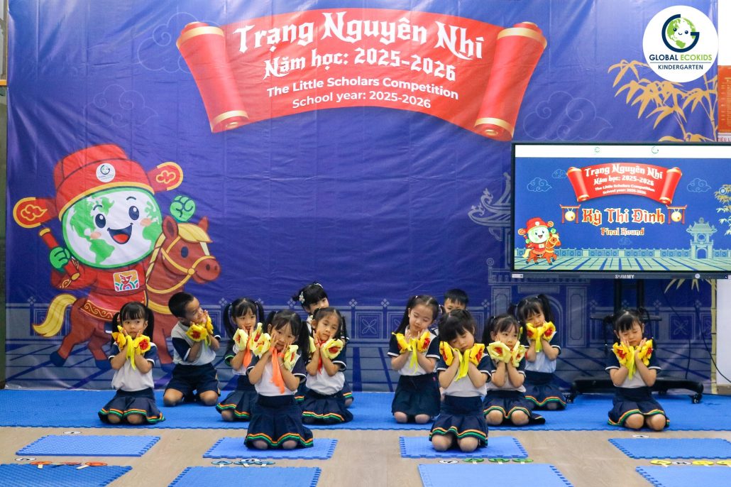 “Trạng Nguyên Nhí 2025 là sân chơi trí tuệ được Hệ thống Mầm non Quốc tế Global Ecokids tổ chức, dành cho các bé từ 3 đến 6 tuổi thuộc khối Orange, Apple và Pineapple. Cuộc thi mang dấu ấn văn hóa Việt Nam khi tái hiện hình thức khoa bảng xưa, đồng thời mở rộng cơ hội để trẻ tiếp cận kiến thức đa dạng, trong đó có cả những câu hỏi bằng tiếng Anh nhằm nuôi dưỡng tinh thần hội nhập.”